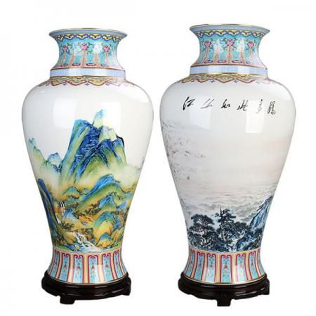 《江山双绝》粉彩对瓶 王怀志大师创作