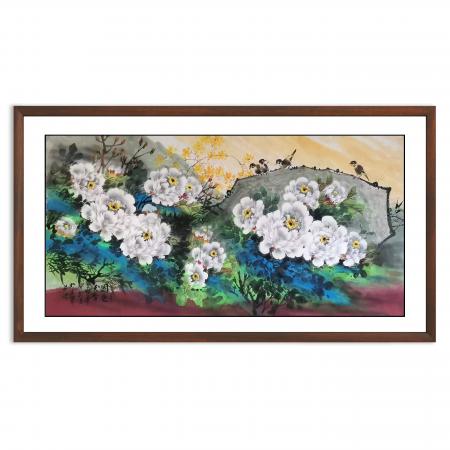 王宝钦8平尺花鸟牡丹作品《国色天香》